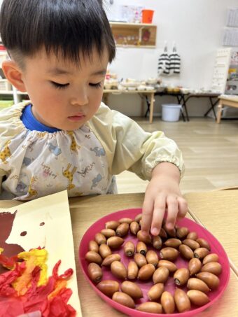皆が本田東公園で大事に拾ってきたドングリから好きなものを選びます!「どれにしようかな?✨✨」