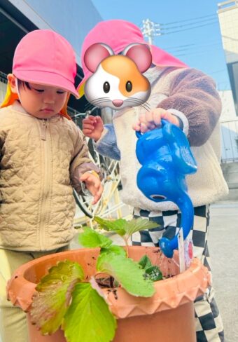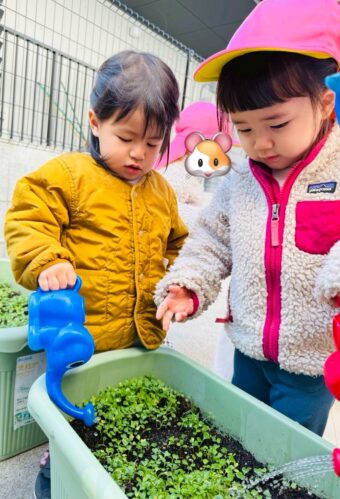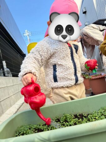 にじ🌈組さんのお兄さんお姉さんの、小松菜のプランターにもお水をあげました。(^^♪