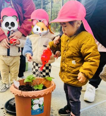 みんなで、ぞうさんじょうろで水をたっぷりとあげました。