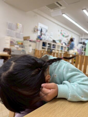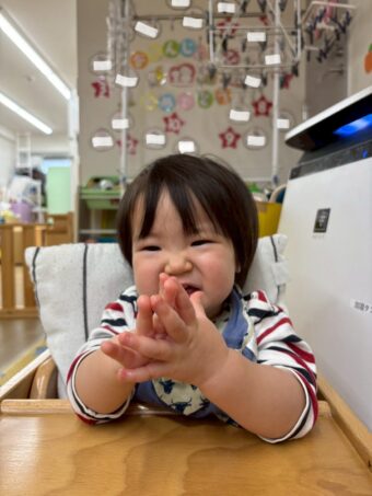みんなに注目されるとテレテレ💦と顔を隠しちゃったけど、普段の保育の時間には「あ~おい涙のコキンちゃん♪」とよくお歌を歌ってくれているんですよ~!