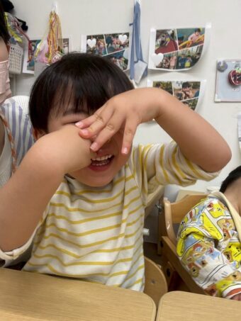 お友だちに名前を呼ばれると、少し恥ずかしそうに手を挙げるHさん😊