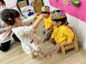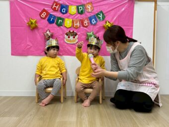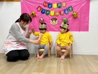 先日、12月のお誕生会がありました!本日の主役は双子のIさんとHさんお揃いのトレーナーがとっても素敵です✨