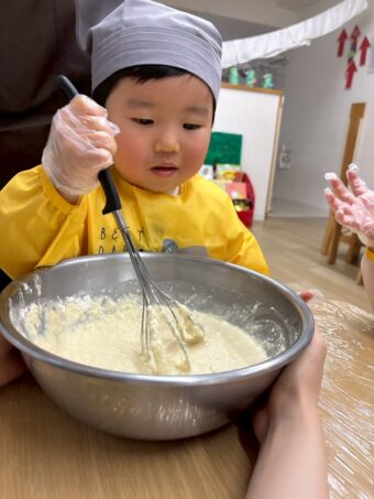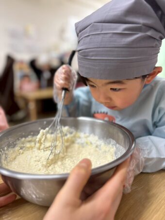 生地は重たく混ぜるのも大変な中、一生懸命かき混ぜてくれました!