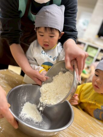 そして、にじ組のこどもたちには、パンケーキの生地を作ってもらいました!(^^)!