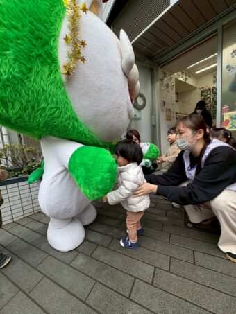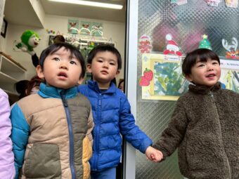 エルガー君からクリスマスプレゼント🎁をもらい、にじ組のR君が代表で受け取ってくれました。そしてあっという間にお別れの時間…「ありがとう!またきてね~!」と名残惜しそうな子どもたち😢また遊びにきてくれるといいね!