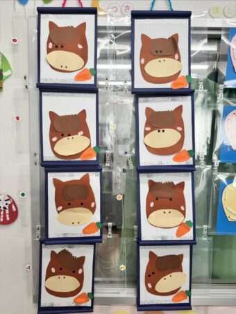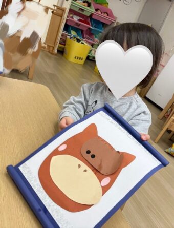 1歳児 つき組さんは、目やたてがみなどを好きに貼り付けて今年の干支『うま』を作ってくれました✨たてがみの場所でこんなにお馬さんの表情が変わるのですね~!!可愛い♡♡♡