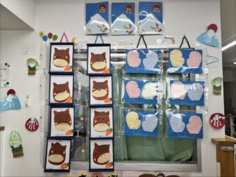 そんなにじ組さんたちは、大きくなった手形でさらにお正月らしさを彩ってくれました✋先生の手も発見✨