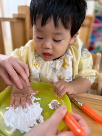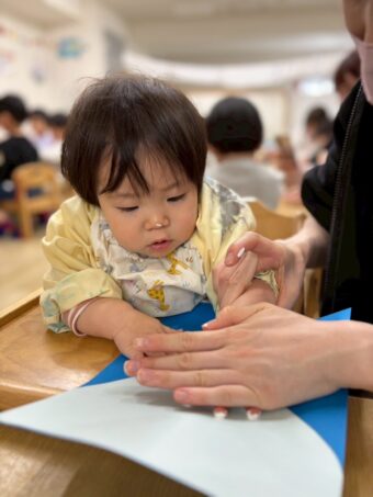 絵の具の感触、冷たさにもずいぶんと慣れてきたようですね☺