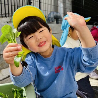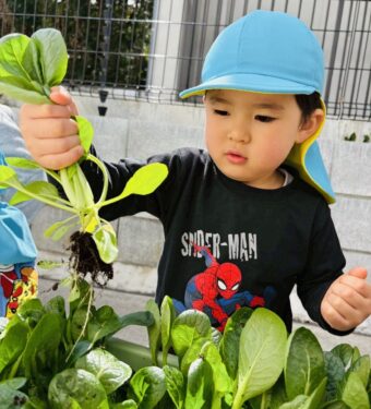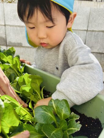 食育 🌈にじ組さんの小松菜の間引き🌈
