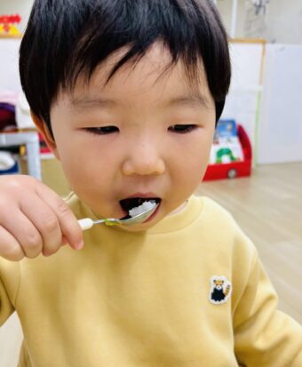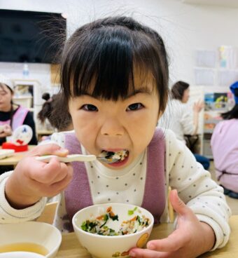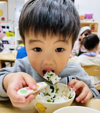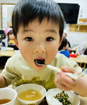 にじ組さん🌈が間引きしてくれた小松菜は、お給食でみんなで食べました。(^^♪