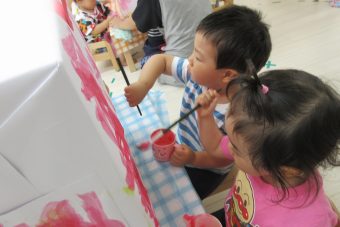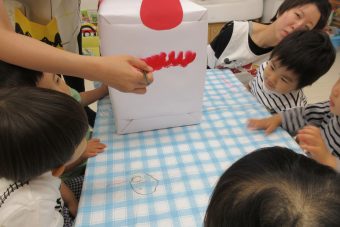 つき組さんは、指に付けてちょんちょん🎶と描いてみたり