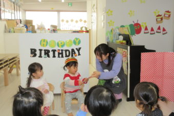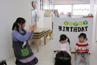 今日は2月生まれのお友達のお誕生日会を行いました。今回の主役はSちゃんとIちゃん(^^)/