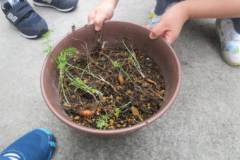 しかし、厳しい暑さで枯れてしまったり、花は付けても実らなかったりと前途多難・・・。野菜を作る大変さを感じた子どもたちでした。