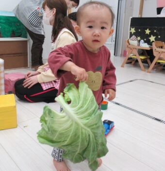 とっても大きな春キャベツを見たり触ったりもしましたよ!