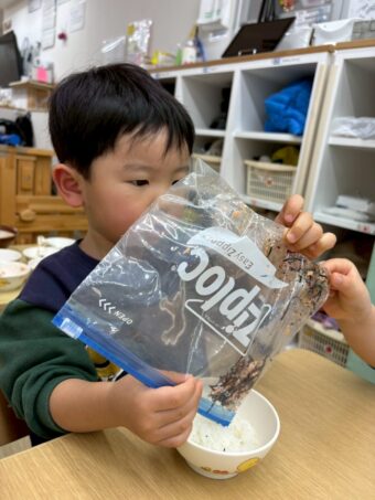1月8日(木)のおやつの時間に、にじ組の子どもたちとオリジナルのふりかけづくりをしました