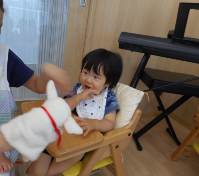 英語の音楽を聴いたり、みんなで手を繋いでみたり・・・