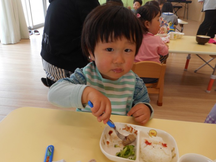 さすがにじさん!スプーンの持ち方も上手です🍴