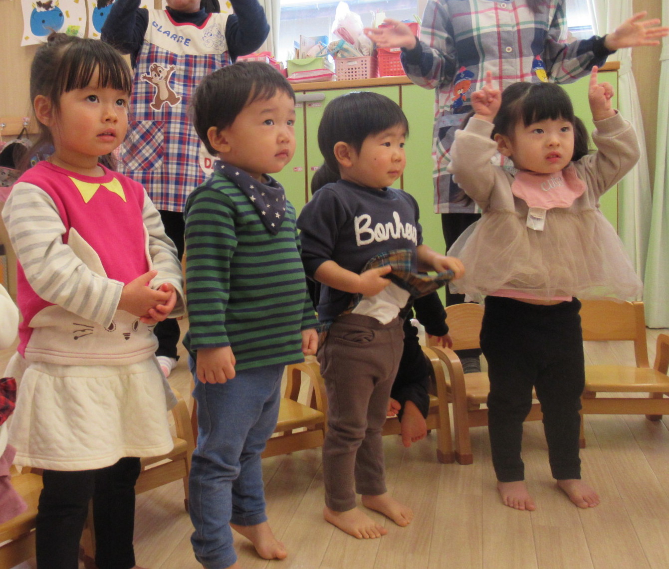 先生が鬼のパンツの手遊びを教えてくれました♬