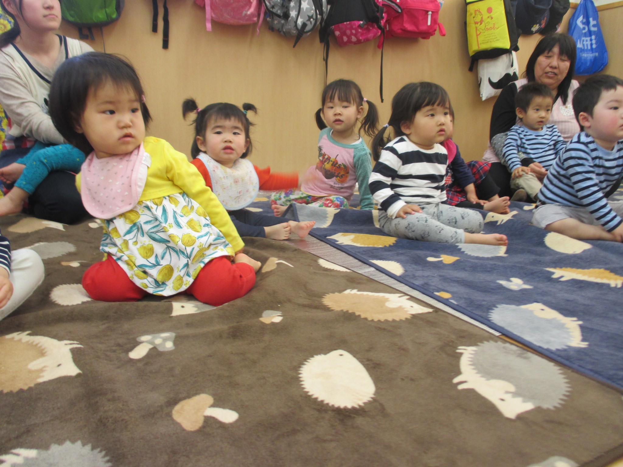 保育者と一緒に 大きな声で「はるですよー!」と春の動物や植物を起こしてくれたり、最後まで楽しくお話を聞いていました。