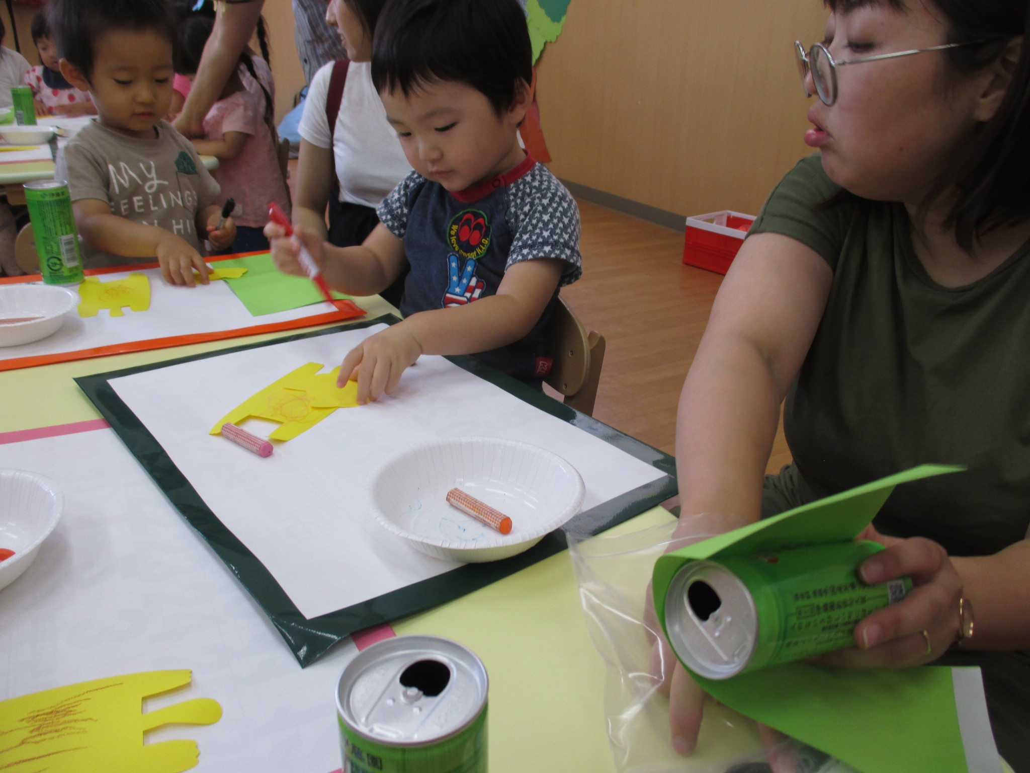 ディズニー体操、触れ合い遊び、朝の会、製作、試食会の流れで進めました(^^♪