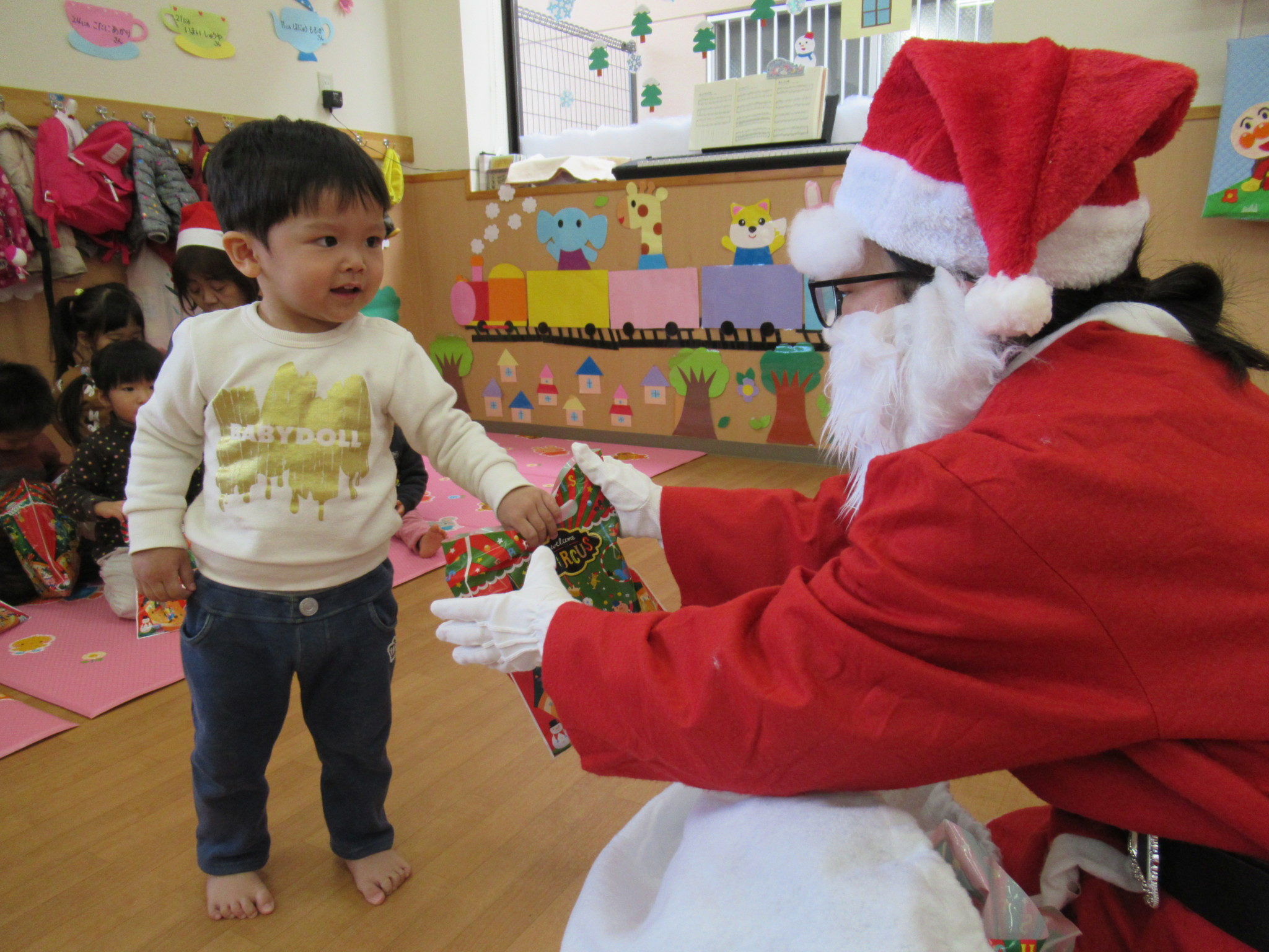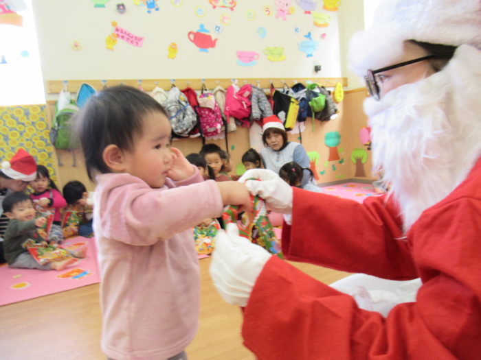 サンタさんの登場に、喜ぶ子・ビックリして固まっている子など様々な反応をしていました。