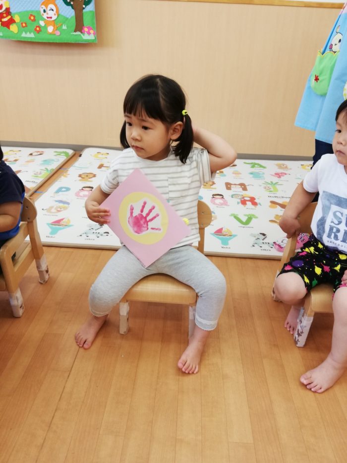 4月生まれのお友だちから順に お名前を呼ばれ・・・元気なお返事と一緒にみんなの前に出てきてくれた誕生児のお友だち。お名前・何歳になったのか・好きな食べ物は?・・・・の質問に上手にお答えしてくれました。