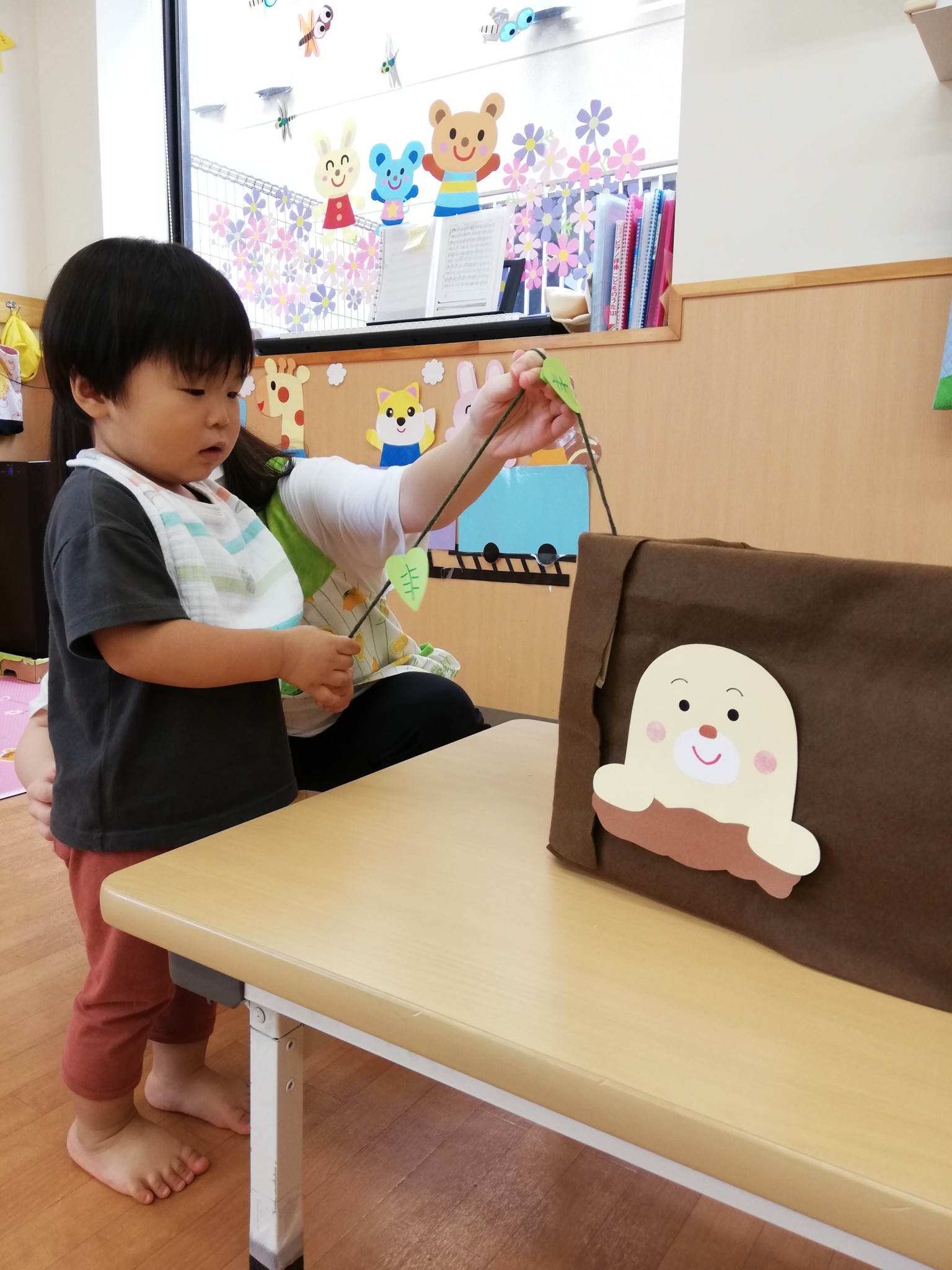 9月生まれのお友だちは4人です。保育者から年齢や好きな食べ物、遊びなどをインタビューされると恥ずかしそうにしながらも笑顔で教えてくれました(*^-^*)
