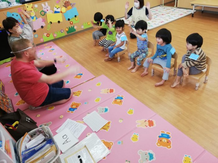 英語教室の先生がいらっしゃるのをいつもワクワクしながら待っているにじぐみさん。