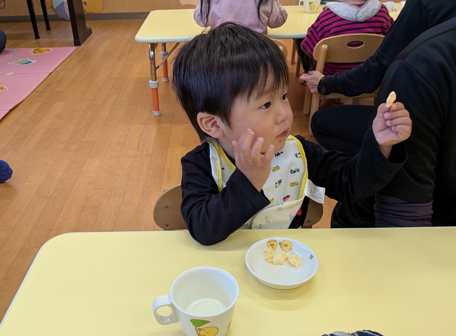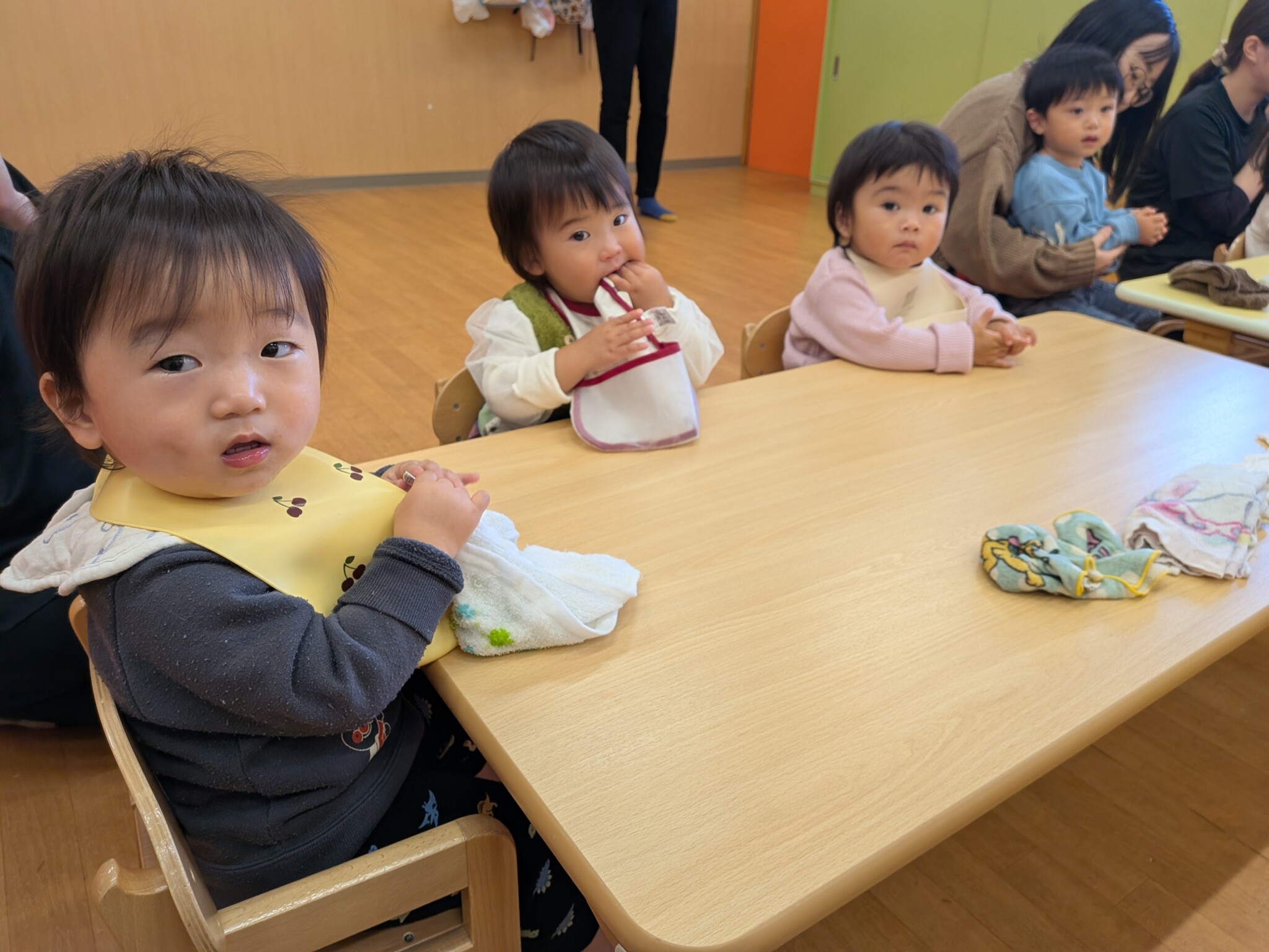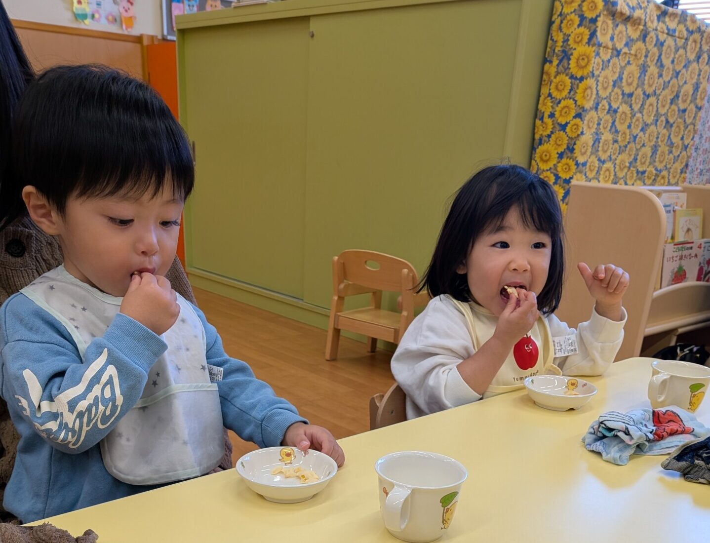 椅子に座っておやつを食べたり、レッスンを受けたり