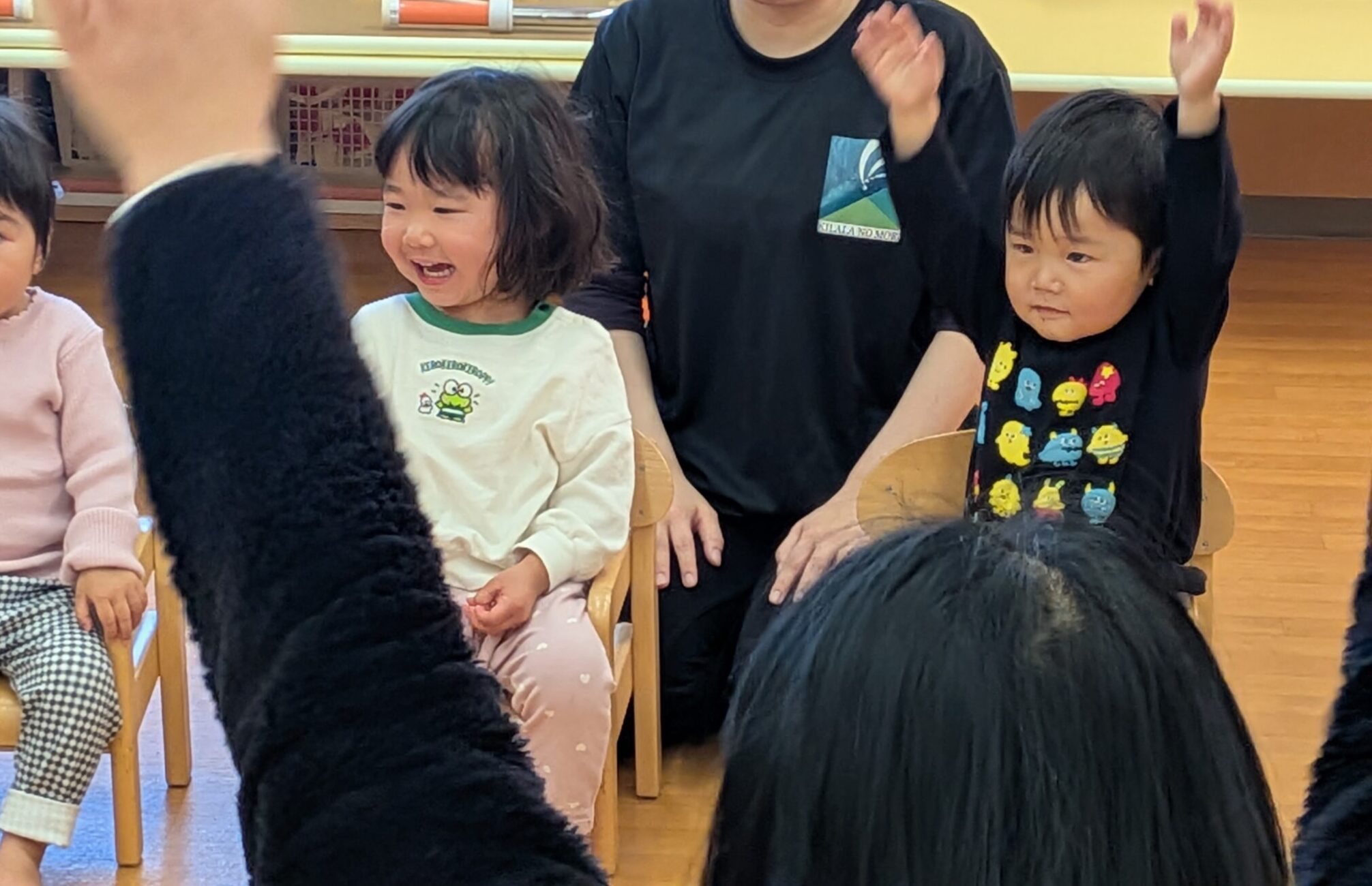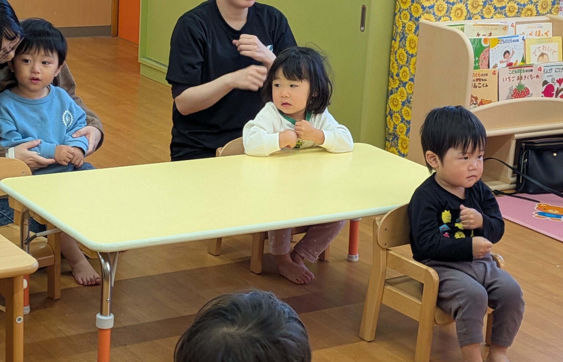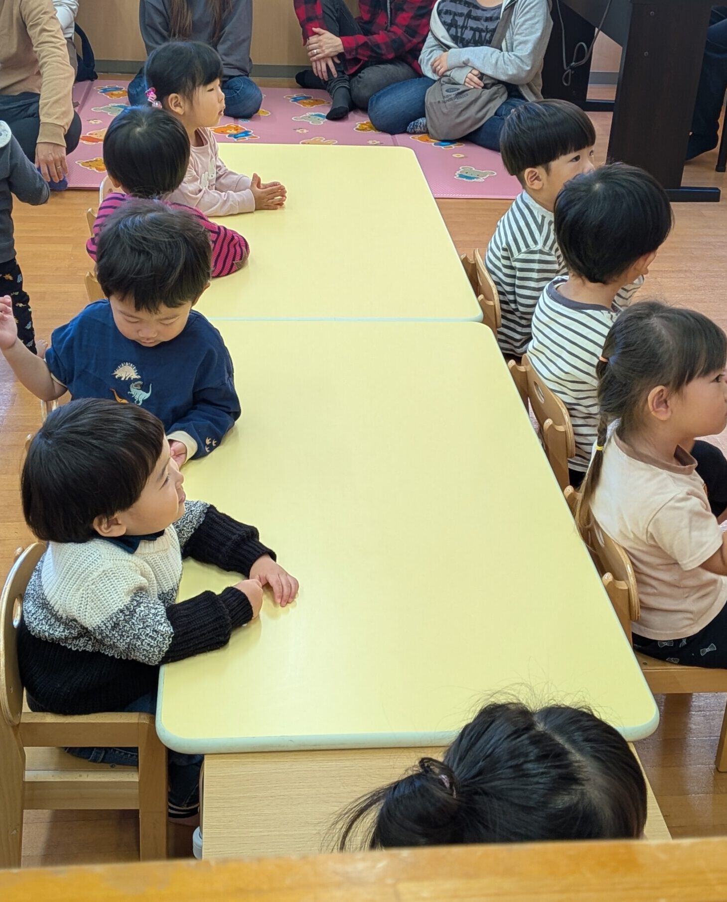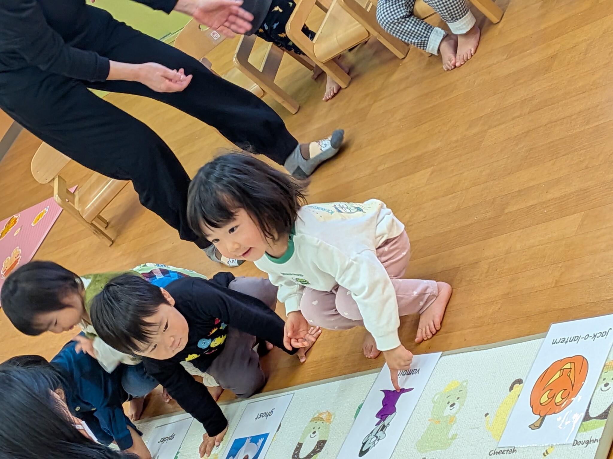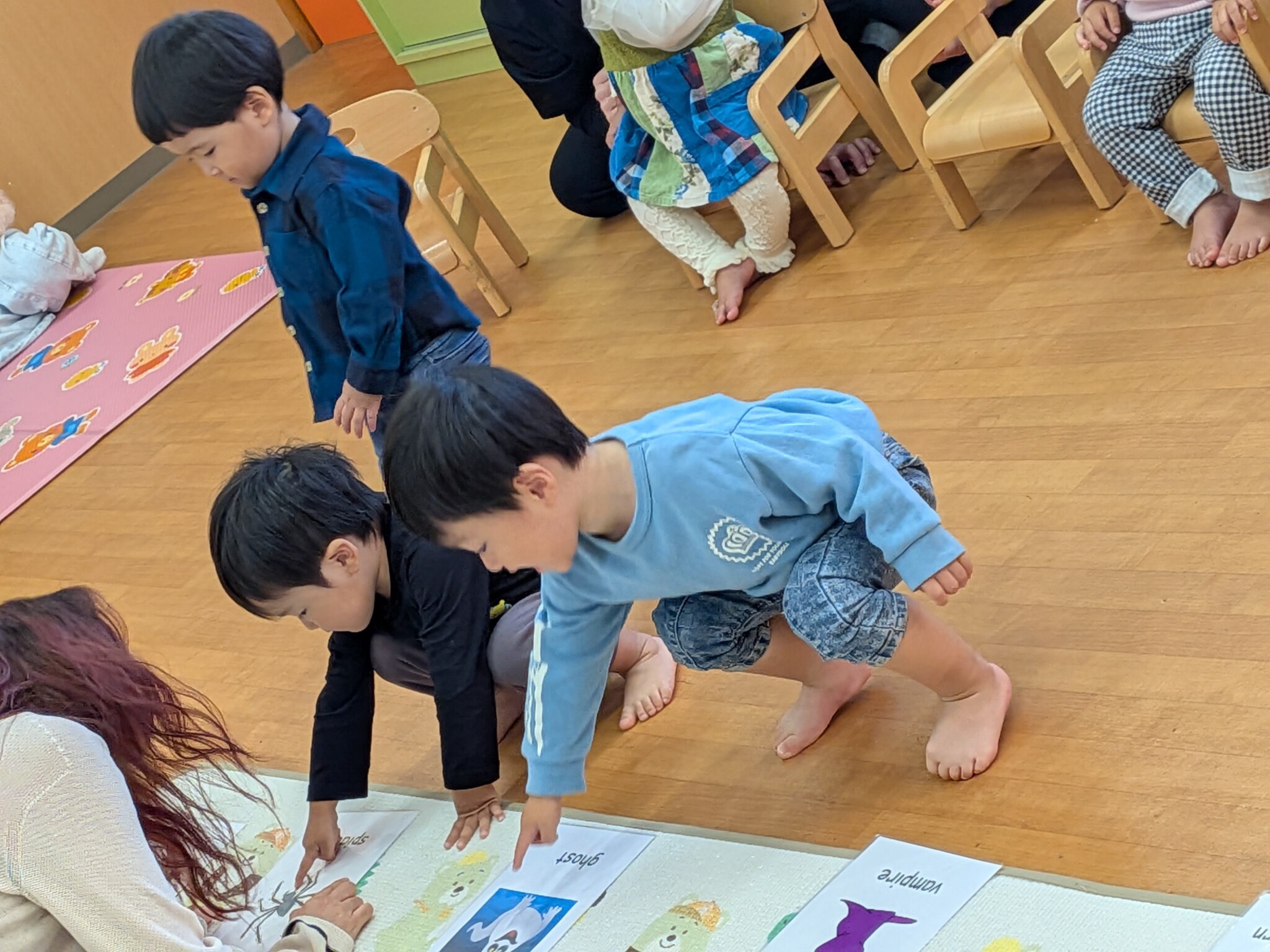 つき組さんが英語の単語を口にしたり、説明を聞い