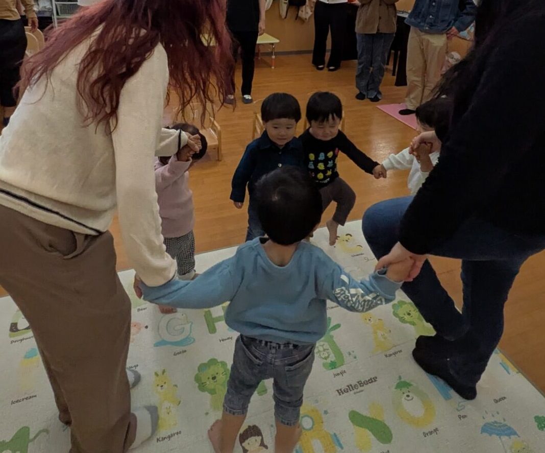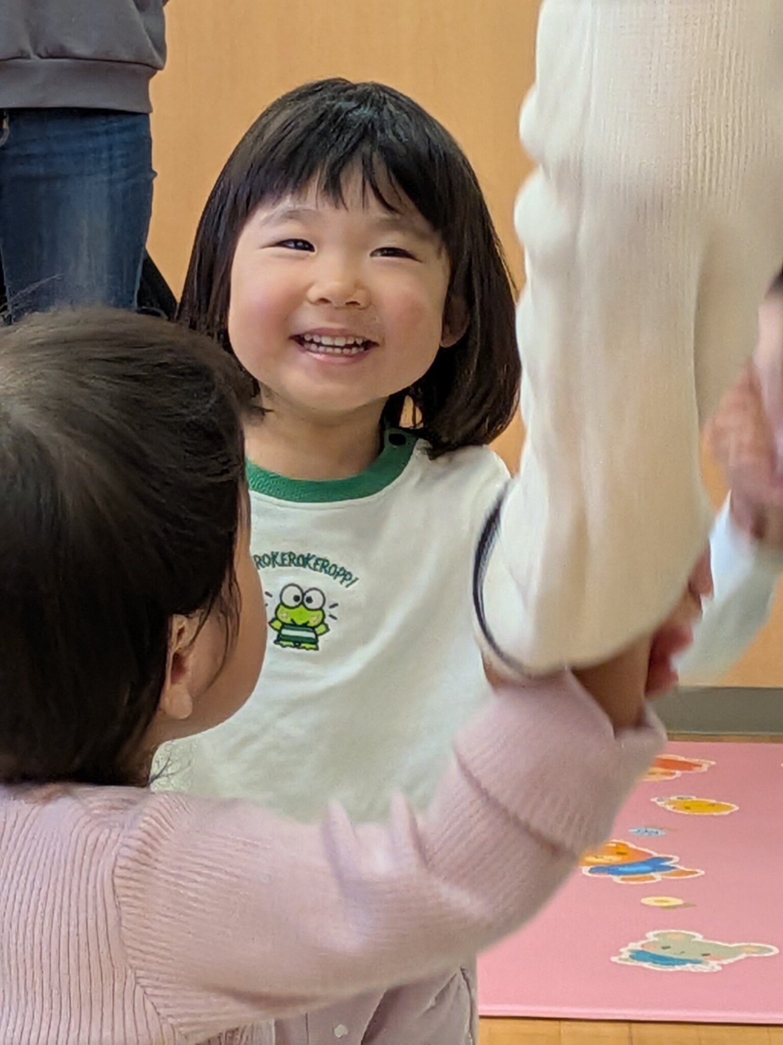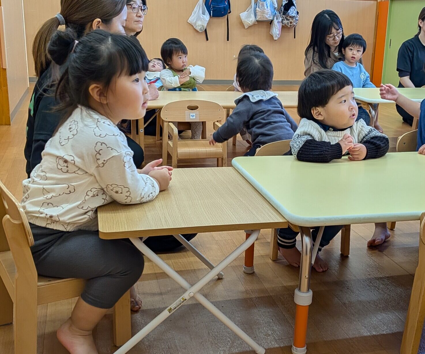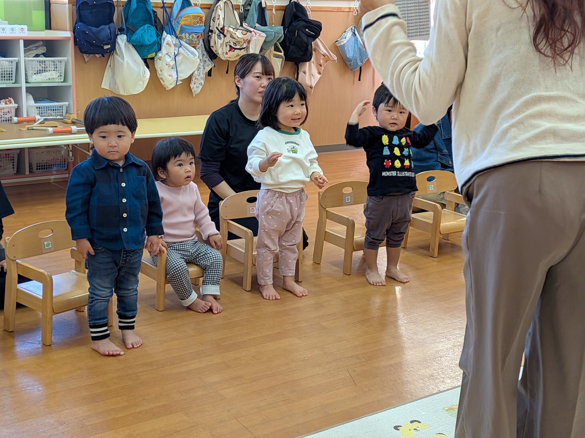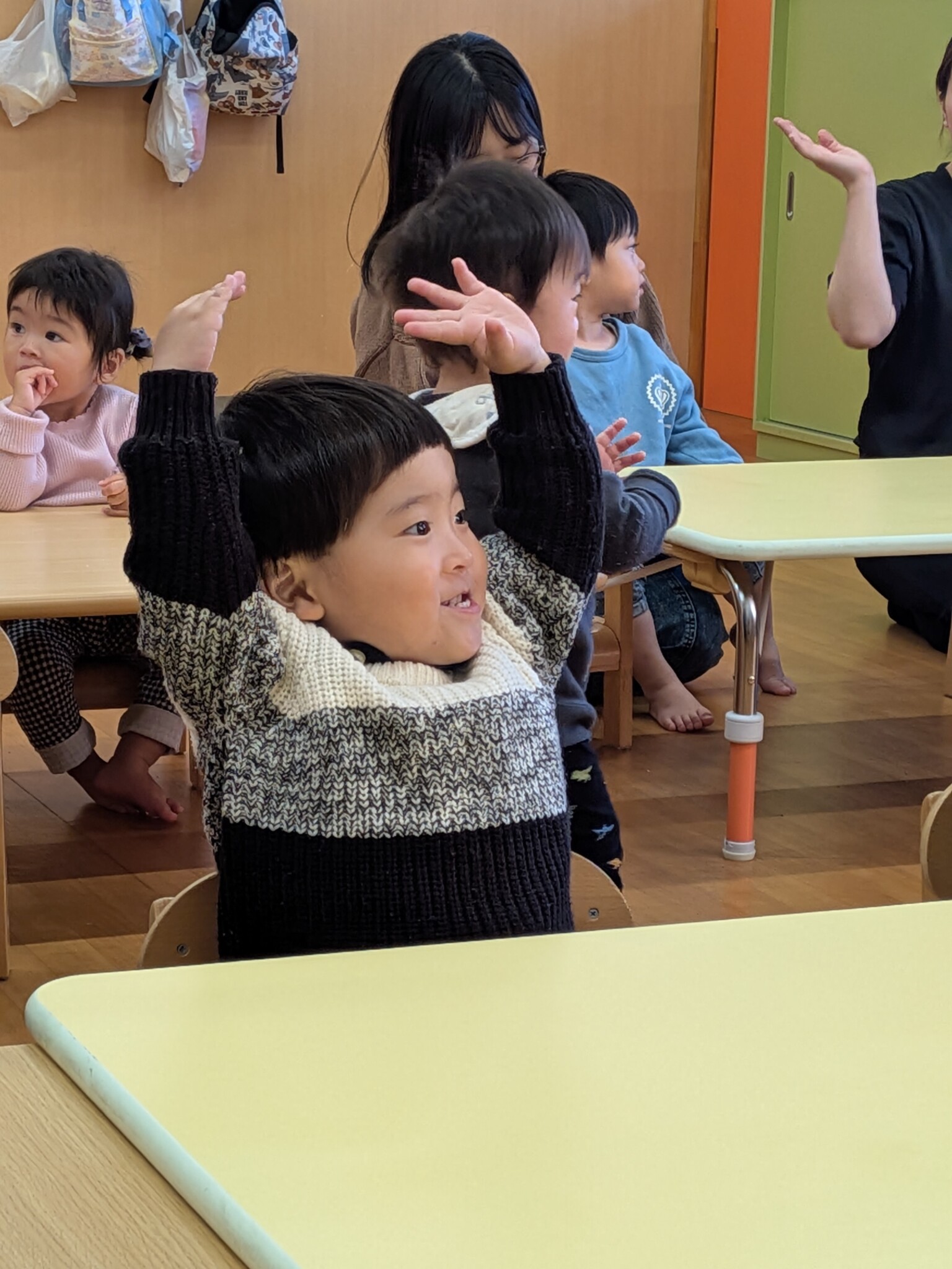 つき組さんが英語の単語を口にしたり、説明を聞い