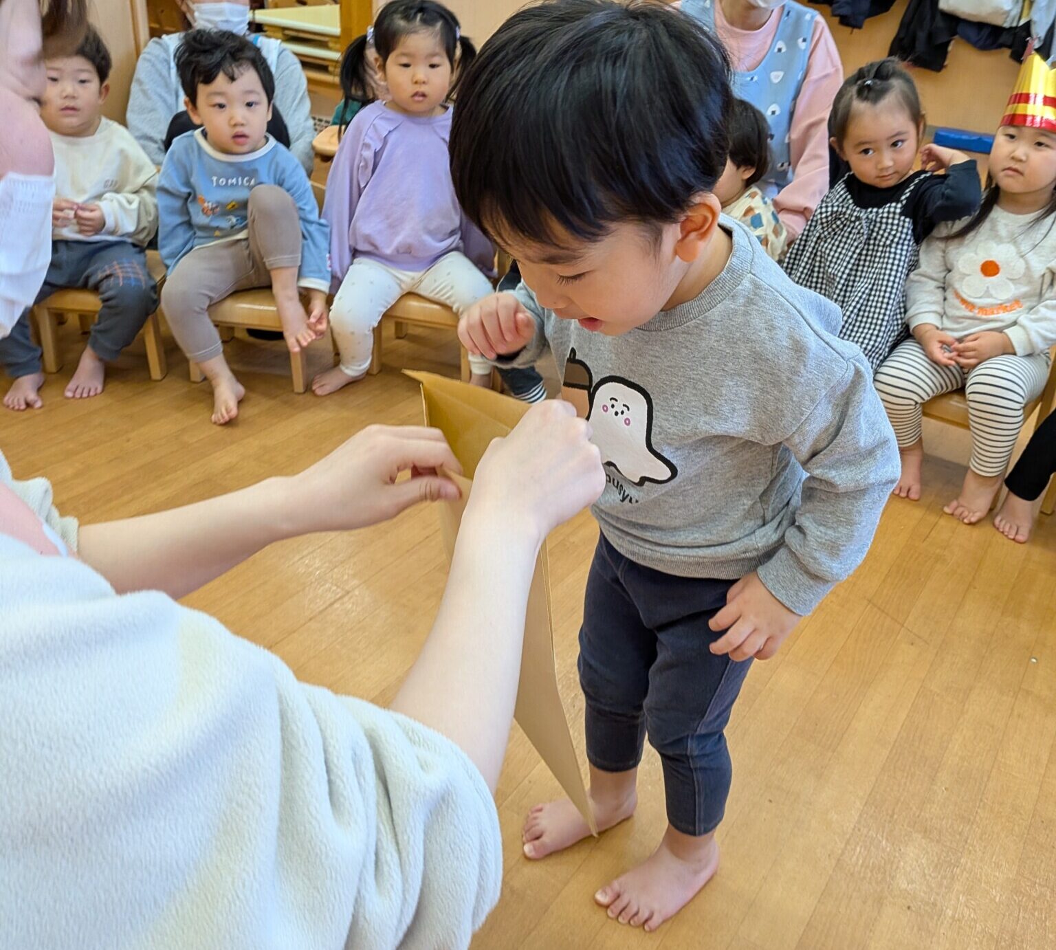 次は、保育者からの出し物「魔法のふくろ」です!!
