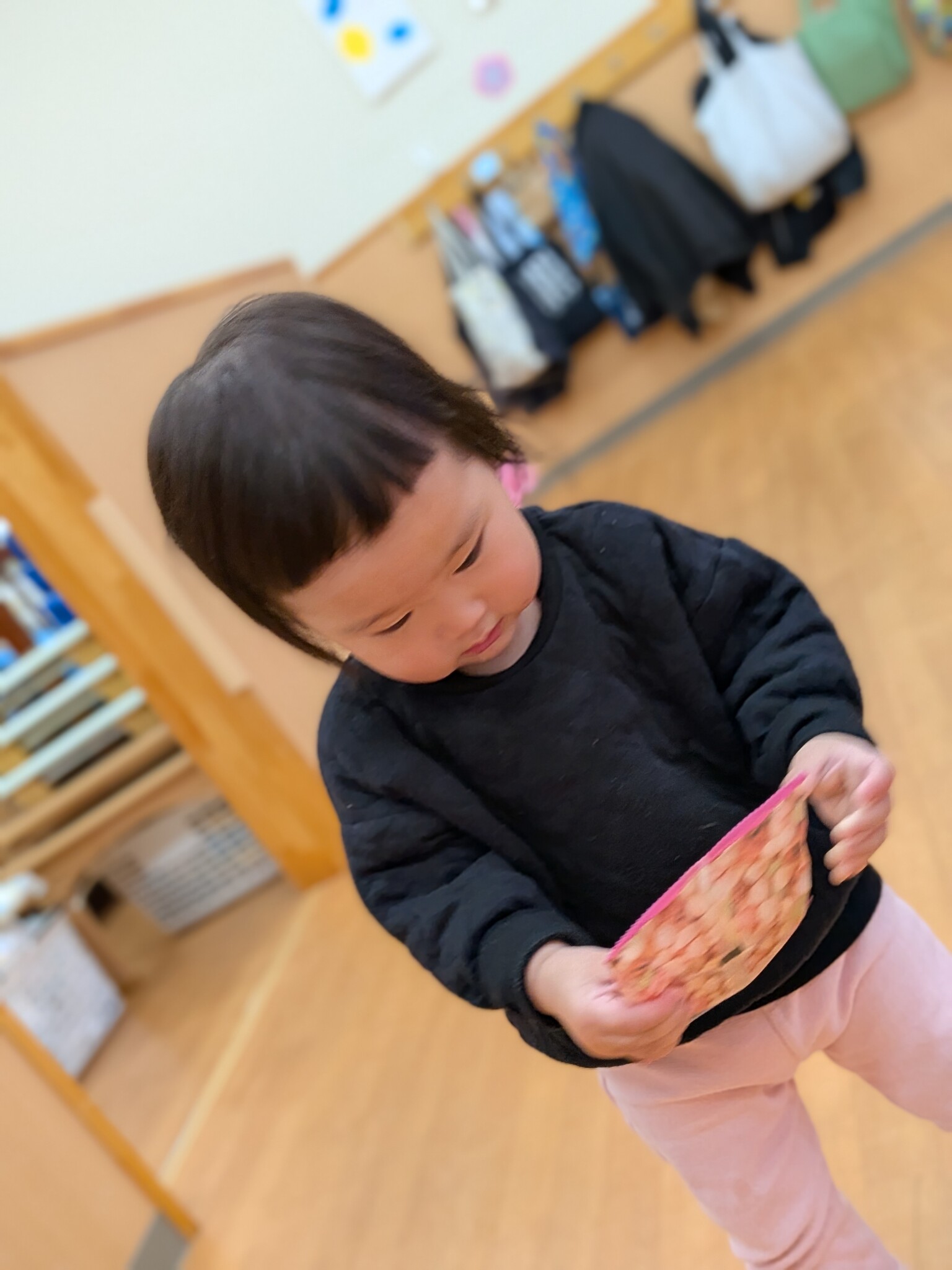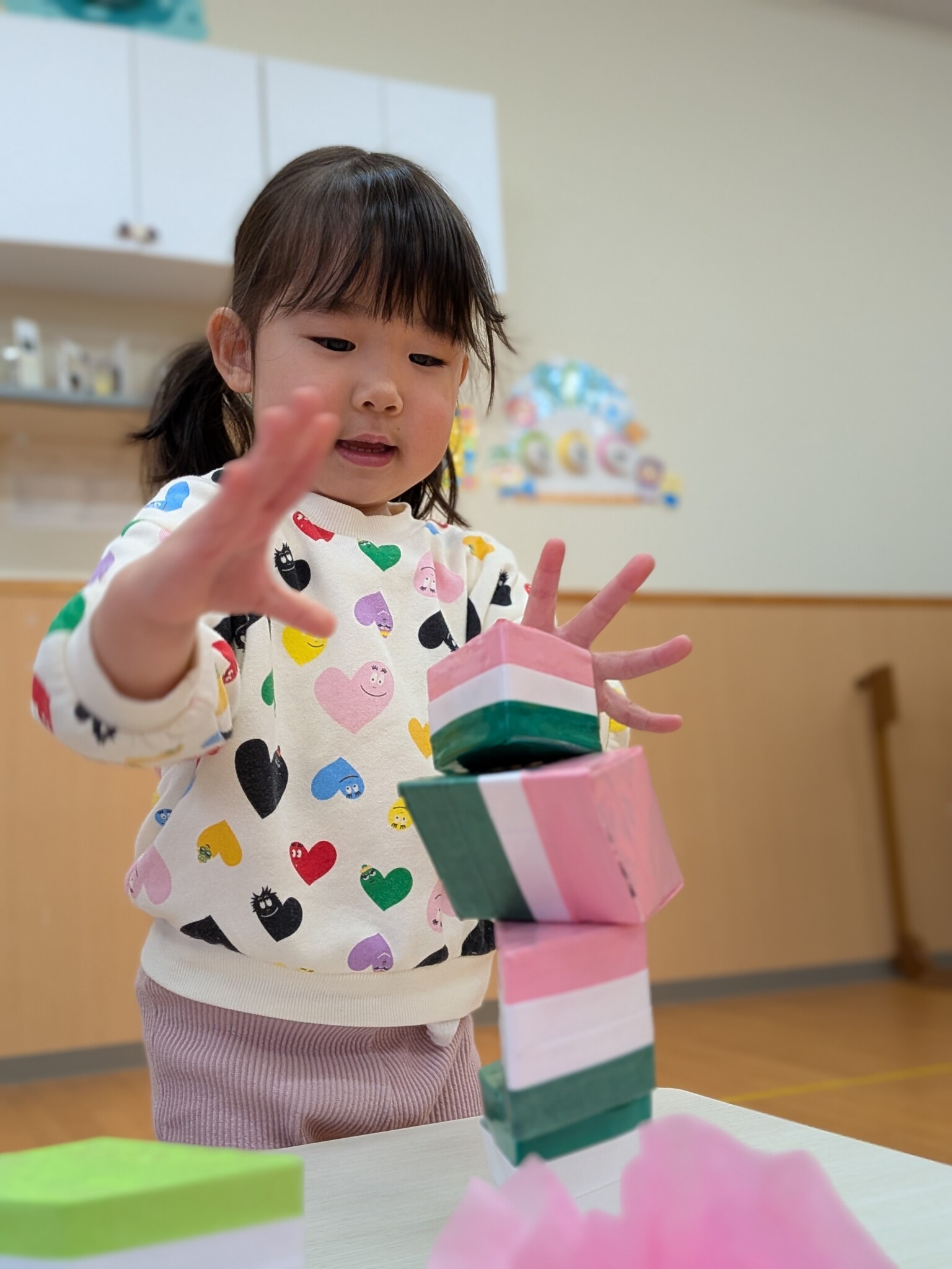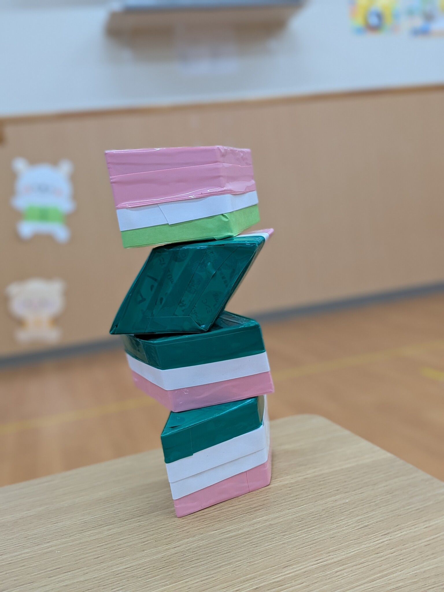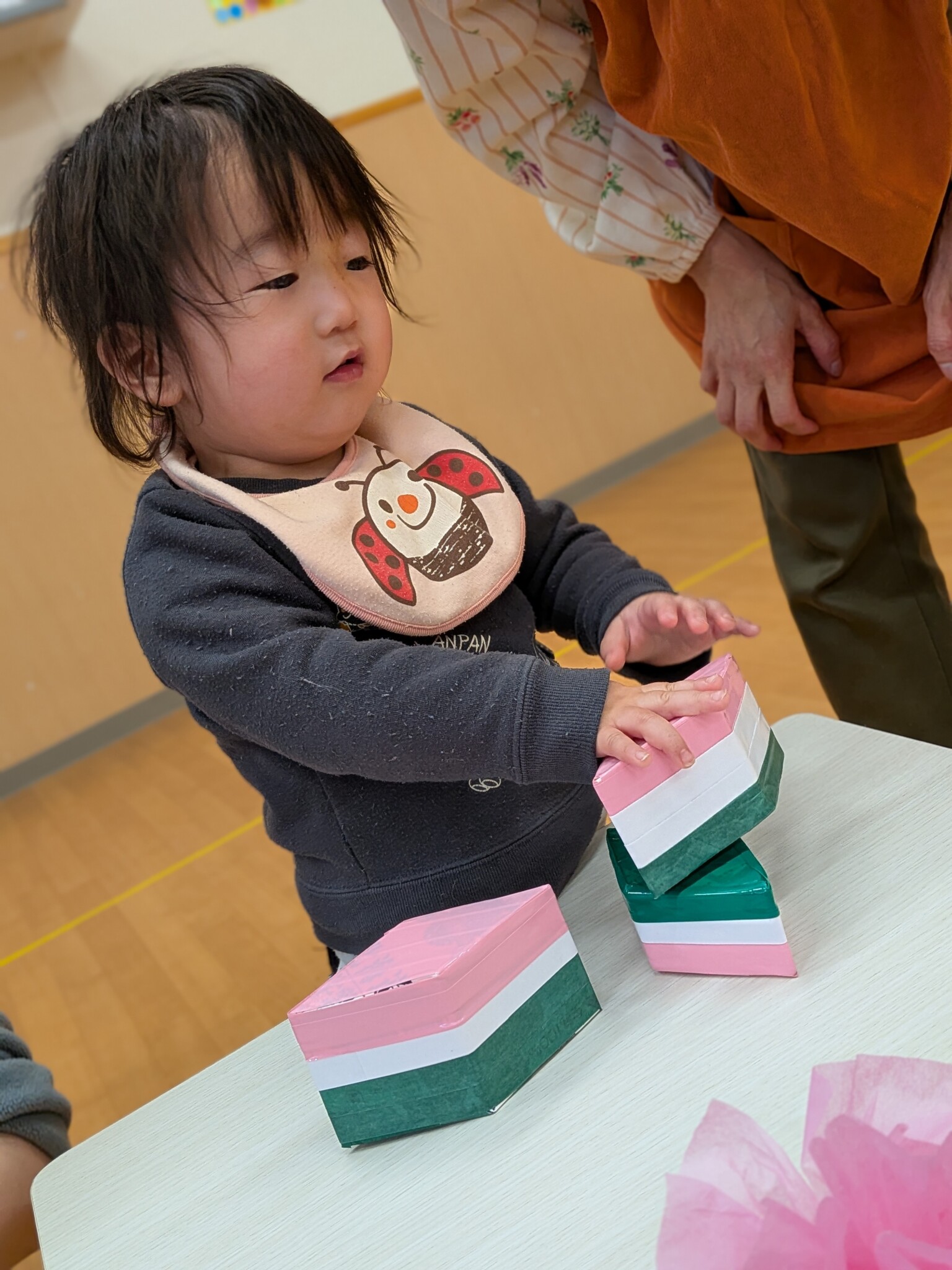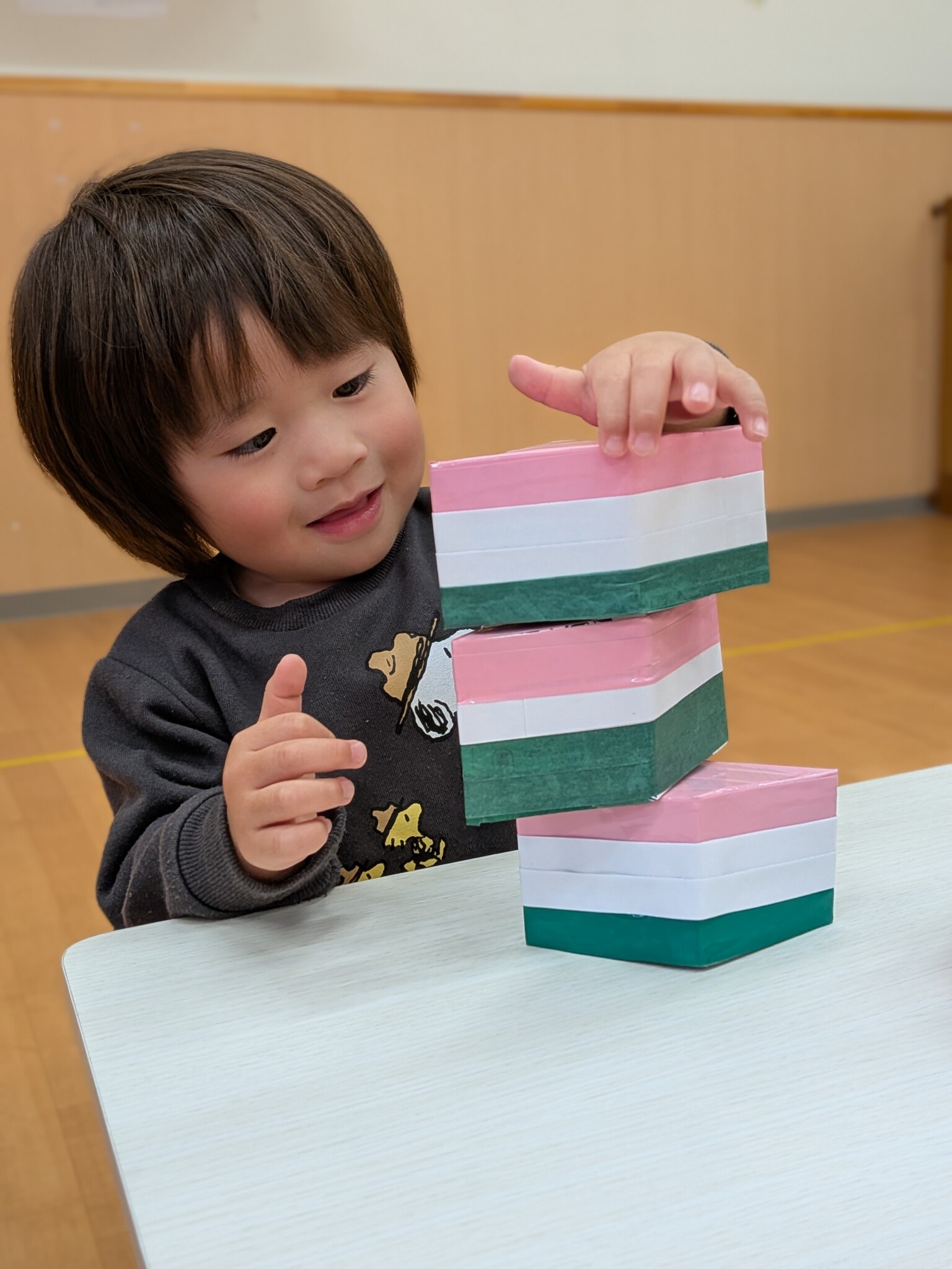 ひし餅積みをします!!諦めず、積む姿が印象的でした✨