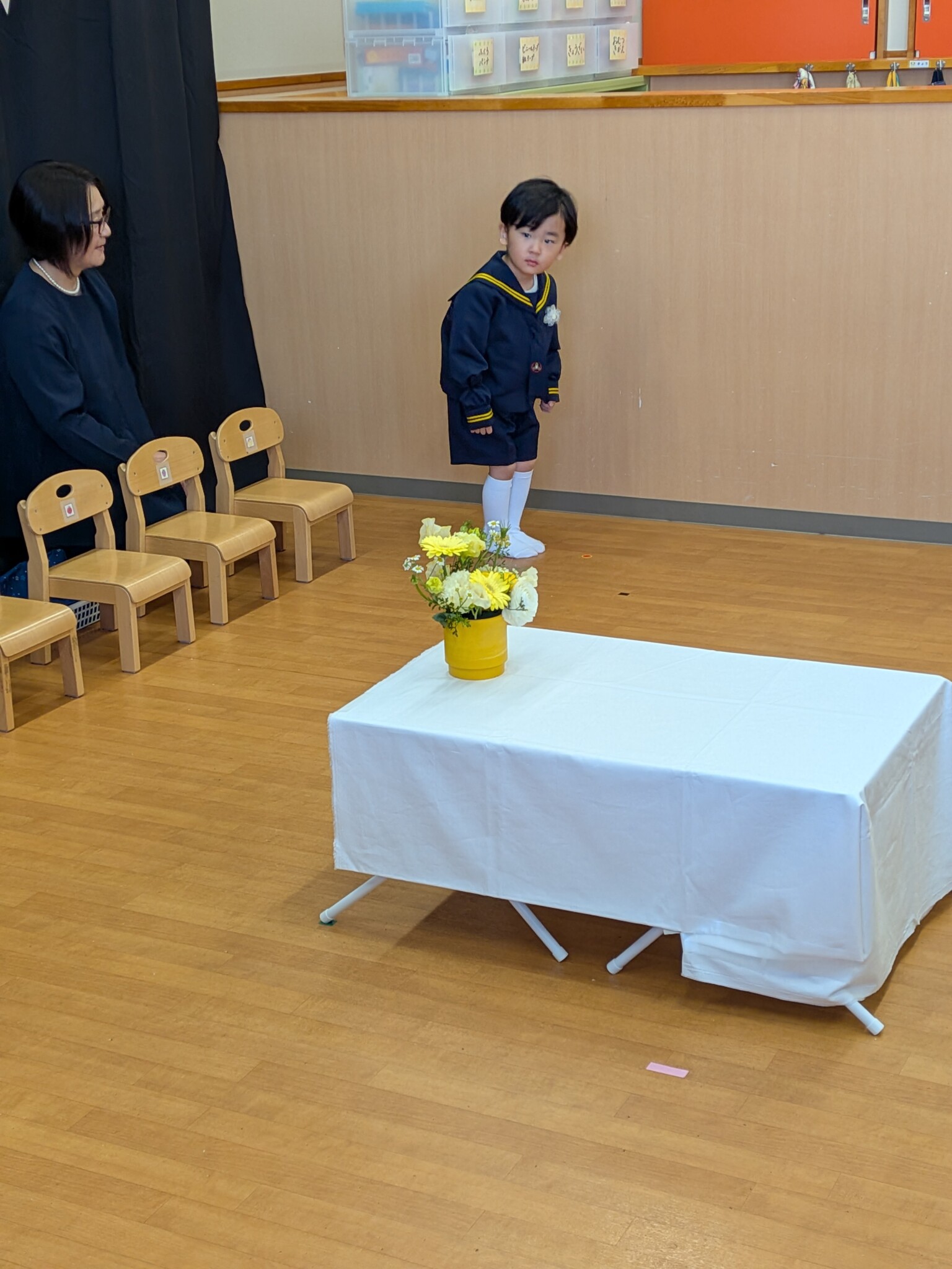 恥ずかしそうにしながらも、入場し、お椅子に座ることができました!!